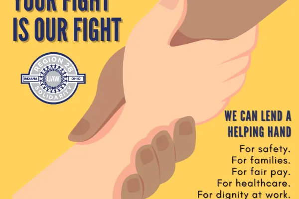 UAW Region 2B members are employed by more than 200 diverse companies in Indiana and Ohio, with operations ranging from automobile assembly, parts production, healthcare, financial services, food service, office and professional workers, and more.