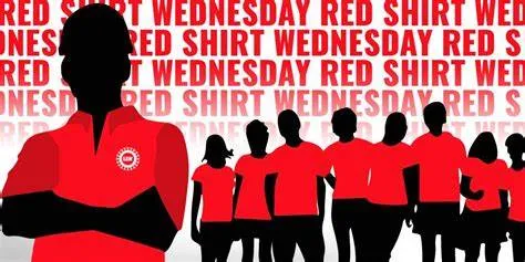 Thousands of union members wear red shirts on Wednesdays as a sign of solidarity. When a sea of red shirts greet management, it’s a way to let them know that the workers stand together.